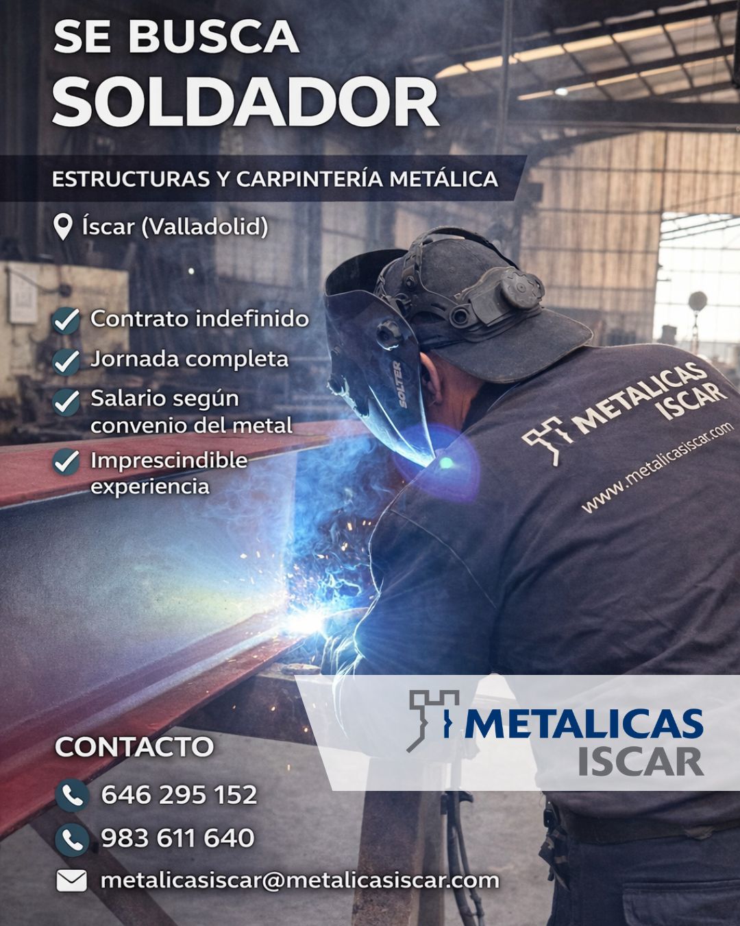 La empresa METÁLICAS ÍSCAR (Íscar, Valladolid) ofrece puesto indefinido de soldador.